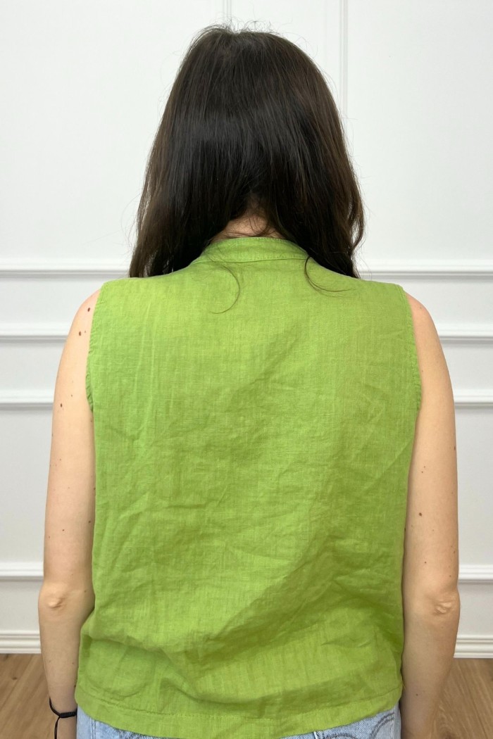 CHALECO JAPONÉS LINO VERDE PISTACHO