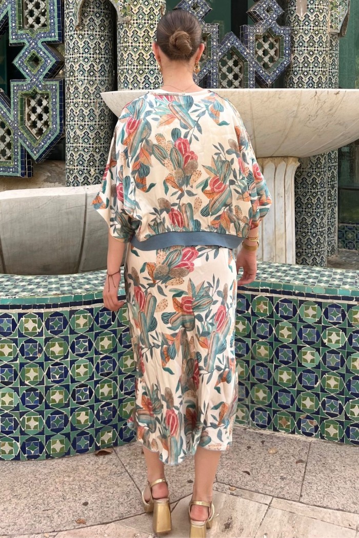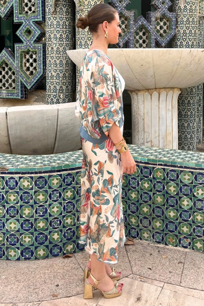 FALDA MIDI SATINADA ESTAMPADA AZUL