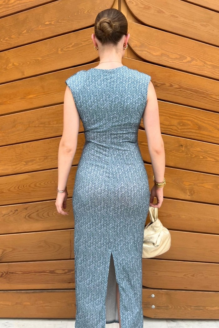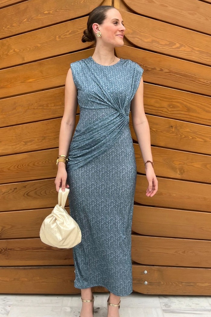 VESTIDO CRUZADO ESTAMPADO AZUL