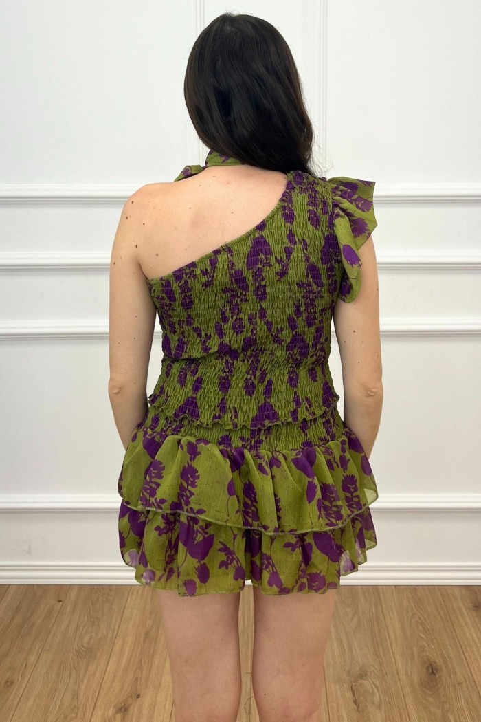 TOP FRUNCE ASIMÉTRICO BANDA VERDE
