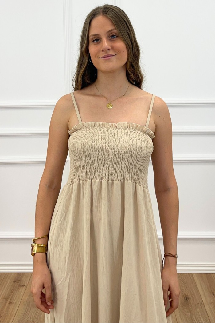 VESTIDO LARGO PANAL BEIGE