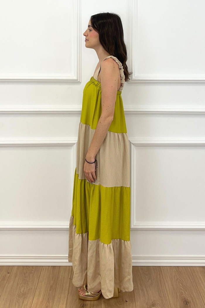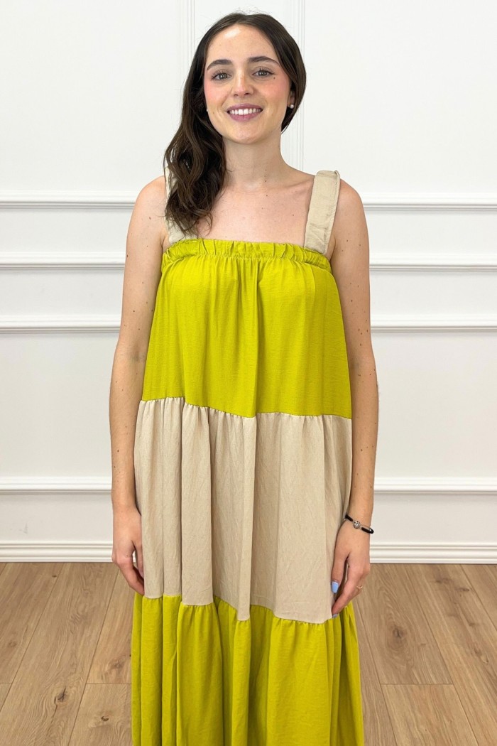 VESTIDO PANALES BICOLOR VERDE LIMA