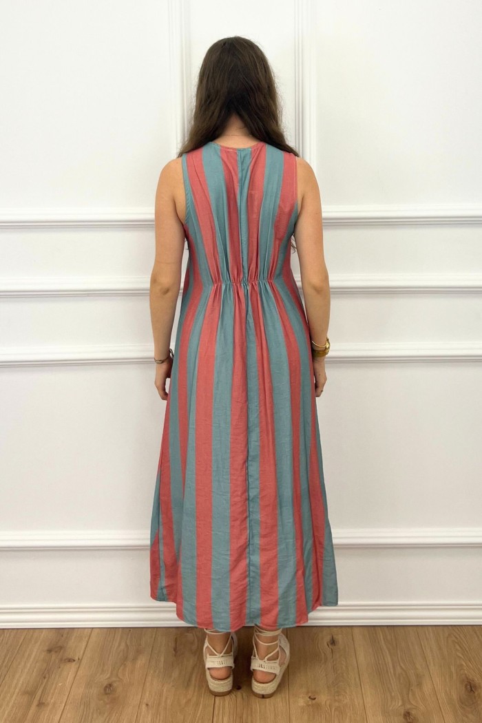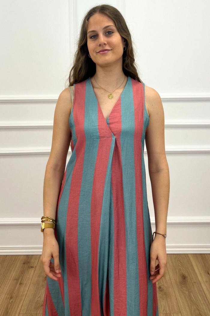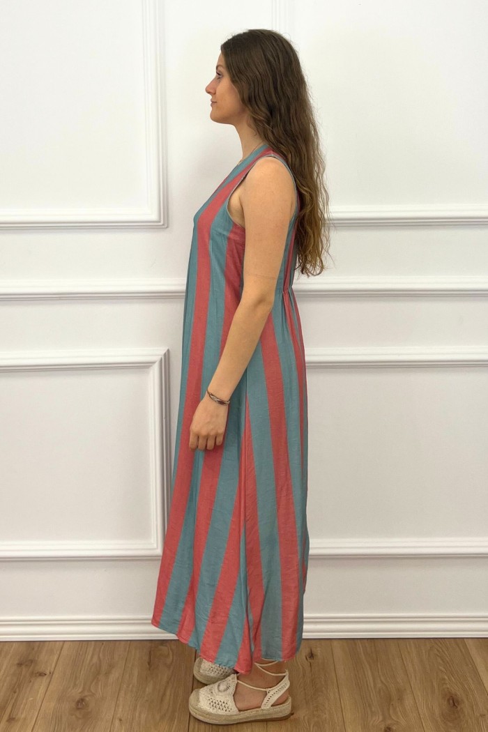 Vestido largo tipo túnica de manga sisa y escote pico.