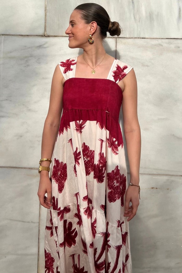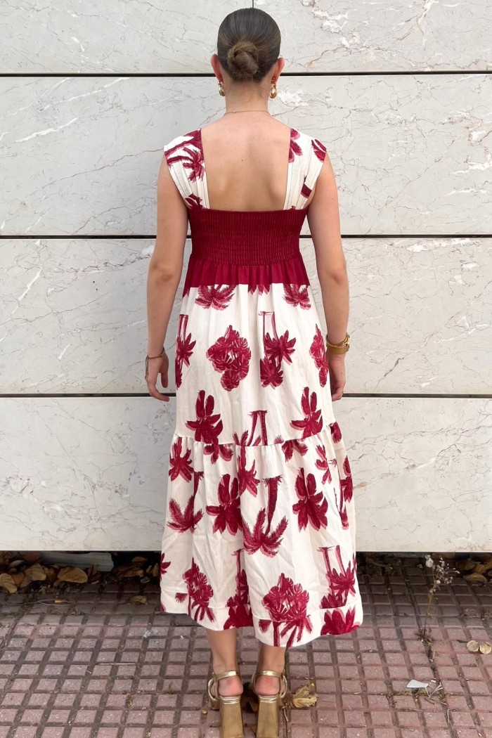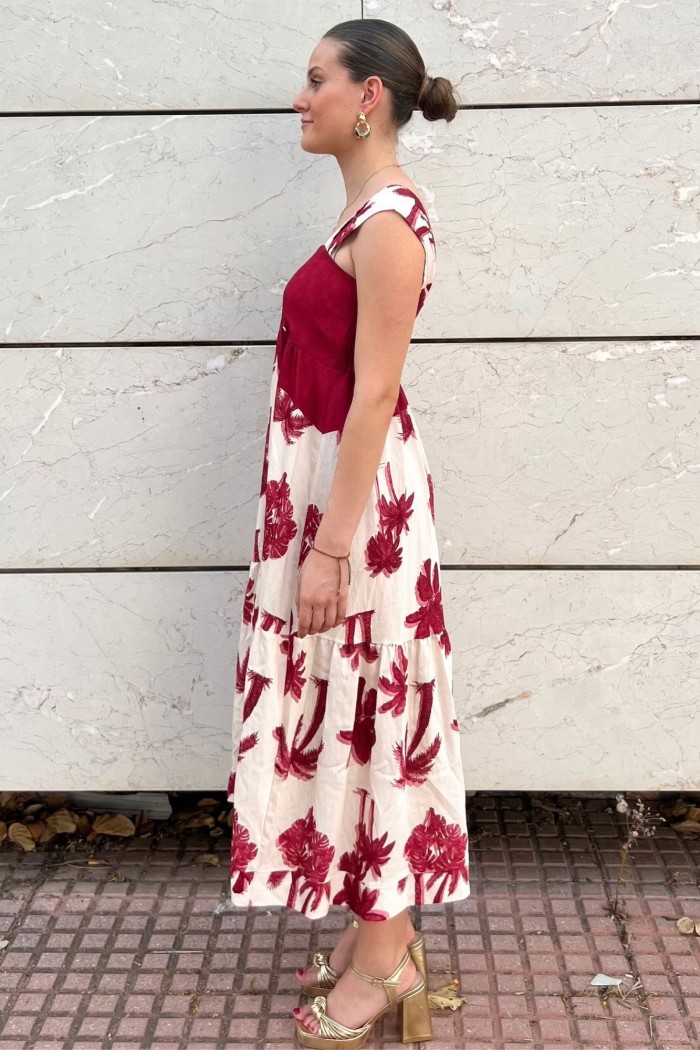VESTIDO LARGO ESTAMPADO BURDEOS